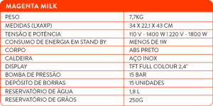 Assim como a identidade da comuna italiana Magenta, a máquina de espresso mistura as raízes tradicionais autênticas com um conceito de design contemporâneo. Simples e ainda assim muito estilosa, a Gaggia Magenta Milk é pensada para todos os apaixonados por café, inovação e tecnologia.